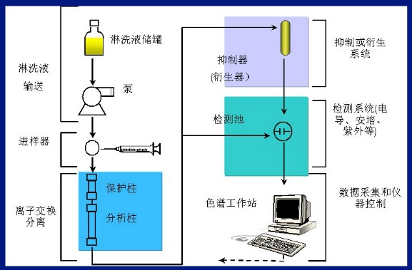 ICS-3000多功能型离子色谱仪的原理为一种物理化学分析方法。它利用混合物中组分在两相间分配系数的差别,当溶质在两相间作相对移动时,各组分在两相间进行多次分配,从而使各组分得到分离。离子交换是用于分离阴离子和阳离子常见的典型分离方式。离子色谱的分离机理主要是离子交换,有3种分离方式,它们是高效离子交换色谱(HPIC)、离子排斥色谱 (HPIEC)和离子对色谱 (MPIC)。我们室ICS-3000多功能型离子色谱仪分析机理主要是离子交换。通过流动相即淋洗液把混合物中各组分带到分离柱中,各组分在相应的柱子中有相应的组分和其进行交换,把不需要的组分交换掉,而需要的组分由于其分子的大小及性质不同,在柱子中滞留时间先后不同,从而达到分离检测的目的。